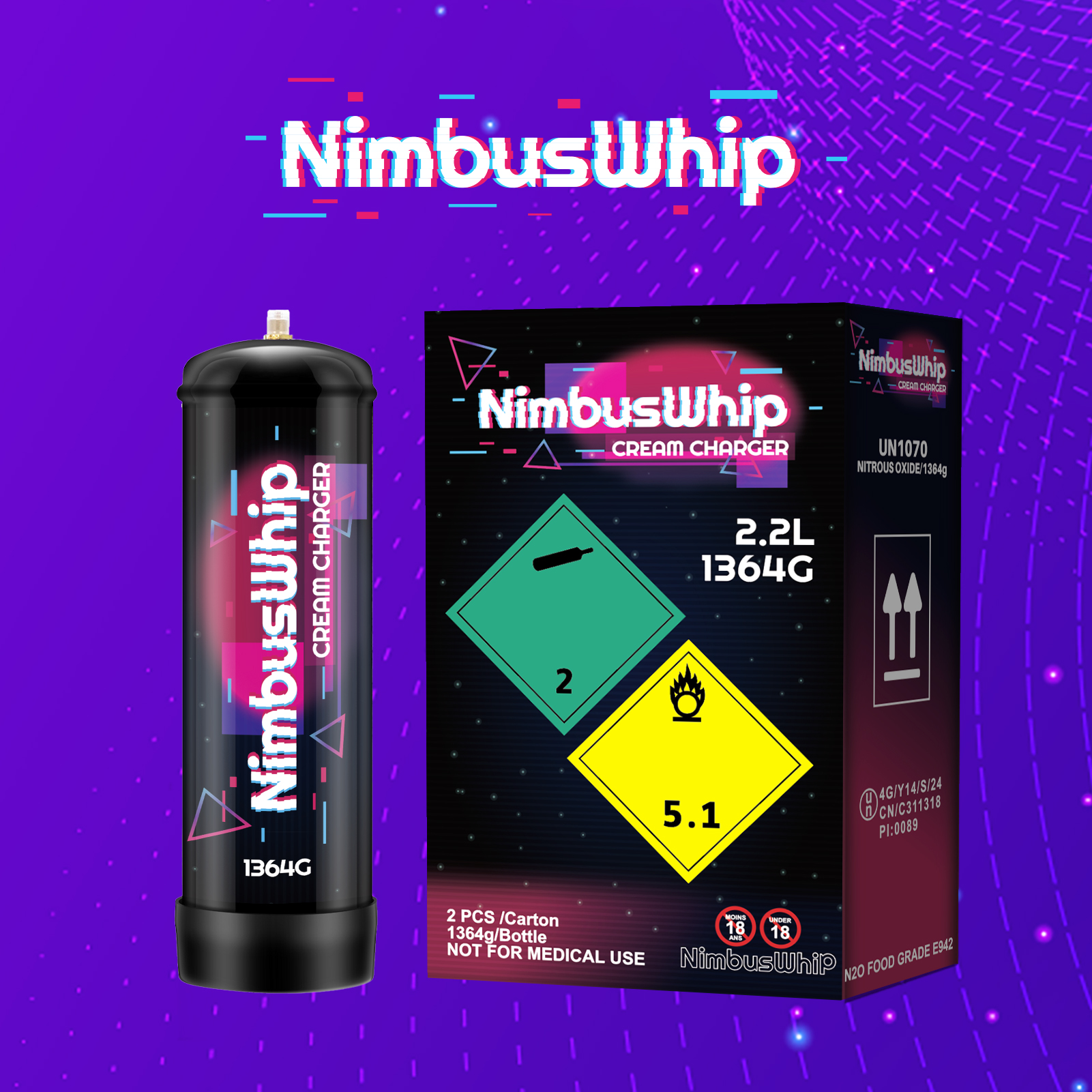 2.2L 1364g N2O Cream Charger Bulk